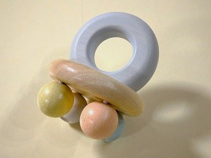 赤ちゃんが握りやすいハンドルとカラフルなビーズが付いたラトルです。ビーズが鳴らす音は聴覚を刺激します。
