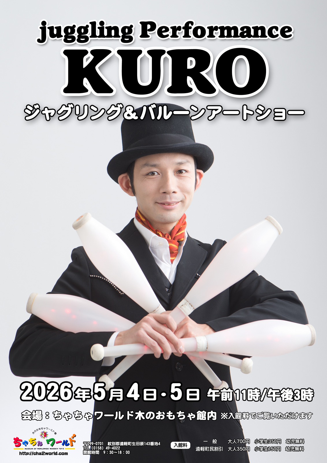 ジャグリングパフォーマー・クロさんのジャグリング&バルーンアートショーを開催!