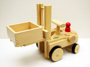 ブナ材をふんだんに使った頑丈な車体のフォークリフトです。リフトは上下に動かすことができ、コンテナは取り外し可能です。ドイツ・ニック社製。 31,240円(税込) |