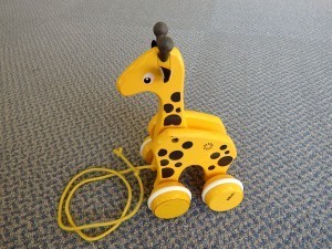ひもをひっぱると、首をゆらゆら揺らして前へ進むキリンのプルトイです。お子様がうつぶせやおすわりができるようになったら、目の前で動かしてあげると、目で追いかける練習や、手を伸ばす遊びになります。 3,850円(税込) |