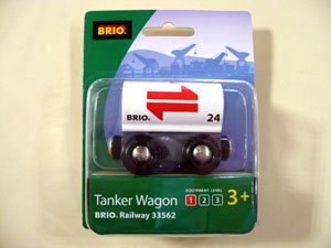 BRIO列車シリーズのタンカー車です。磁石付きのタンクは積み下ろしができ、別売りのクレーンで持ち上げて遊ぶことができます。 1,260円(税込) |