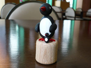 先日入荷した新商品のご紹介です。 底の部分を押すと、ペンギンがクネっと動きます。とてもかわいい子供ペンギン付きです。お母さんペンギンの体長は約4.5cm。 (全長は約7.5cm) |
