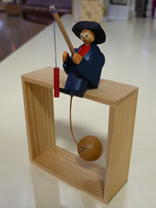 ドイツ・ミニチュア細工でお馴染みのヴェルナーさんの作品。魚に引っ張られて揺れているのか?魚がつれて嬉しくて揺れているのか定かではありませんが、ユラユラと揺れる動きに癒されます。 1680円(税込) |