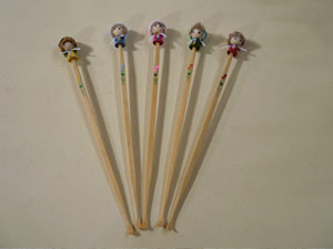 おとめちゃんのかぶっている布のデザインが、ピンクのチェックや星柄など全部で8種類あります。可愛い『おとめちゃん耳かき』おひとつどーですか? 315円(税込) |
