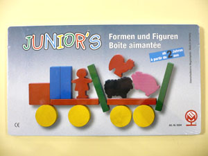 ドイツ・マグネットシュピーレ社製のマグネット玩具です。図形、動物などの木製パーツの裏にマグネットが付いています。28ピース入り、パターン表付き。 4,410円(税込) |