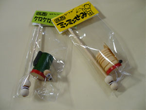 ブンブン回して遊びます。。ケロケロかえるの方は、かえるのような鳴き声が・・・ミンミンぜみの方は、せみのような鳴き声が・・・聞こえる、面白いおもちゃです。 かえる:210円(税込) せみ:262円(税込) |