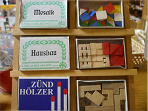 マッチ箱サイズに入った、小さな積木パズルです。1パターンだけじゃないので、色々楽しめると思います。ミニサイズで可愛いですよ!全部で7種類あります。 462円(税込) |