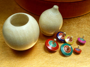 小さいひょうたんと独楽がセットになっています。この写真の中の1番大きい独楽で、直径1cmを切ってますので、1番小さいこまは…(笑)きちんんと回すことも出来ます!! 3,675円(税込) |
