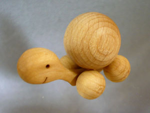 木目がキレイなこのかめさんは、動かすと、背中のボールがコロコロ回ります。大きさは約4cmなので、ちょっと小柄なかめさんですが、大人の方に大人気です。 650円(税込) |