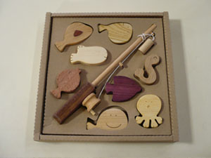 数種類の木を使って作られている魚さんが可愛い釣ゲームです。 亜麻仁オイルを使って仕上げられているので、口に入れても安心です。 3990円(税込) |