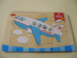 飛行機のパズルです。パズルを全部はずすと、空港が描かれています。絵がとっても可愛いですよ。こちらのパズルは、2才からご利用いただけます。 945円(税込) |