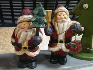 今月の初めから、かなり早いクリスマスコーナーを開設しました。クリスマスの主役、木製サンタクロースはツリーを持っているものとプレゼントを持っているものと2種類あります。体調は約12cmです。 各1,365円(税込) |
