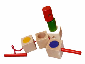 ネフ社のひも通し遊びです。大きめのブロックと棒を使うので、つたない手つきでもひも通しができ、満足感が味わえます。積み木遊びもできます。 7,140円(税込) |