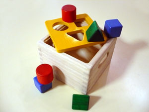 PLANTOY社の形あわせ積木をご紹介します。三角・四角・丸の三種類の積木を、同じ形の穴から通したりして、形を覚えながら遊ぶことができます。 3,150円(税込) |