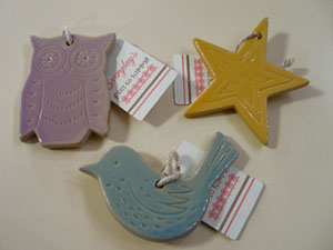 フクロウ・バード・スターの3種類あります。玄関先やお部屋の壁など、『ちょっと寂しいな・・・』と思うところの飾りつけに!※ワレモノです。 367円(税込) |