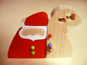 サンタとトナカイが寄り添っている木製オブジェです。飾る他に、組木として遊ぶこともできます。 1,365円(税込) |