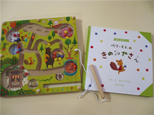 クリスマスプレゼントにオススメ!「ベリーくんときのみやさん」は、絵本とおもちゃがセットになっています。絵本の中のお話にそって、木の実をころころ転がして運んだり・・・。ペン先にマグネットがついていて、きちんとくっついて運ぶ事が出来ます。 2,992円(税込) |