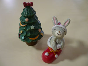 「クリスマスのもので、お手頃な価格のものは・・・?」とお困りの方にオススメ!!ツリーや、サンタの格好をしたうさぎ・雪だるまなど、かわいい小物が、お手頃価格でゲットできます! ツリー367円(税込) |