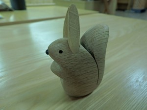 先日ご紹介した、「ペーパーウェイト ふくろう」の仲間、「りす」です。色つけされていないので、木目がきれいです。 2,700円(税込) |