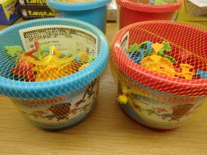 オレンジ・赤・青・緑のカエル各3個ずつと、バケツ、日本語の説明書がセットになっています。自分のカエルを指ではじいて、バケツに入れるゲームです。誰が1番はやく入れれるかな?? 594円(税込) |