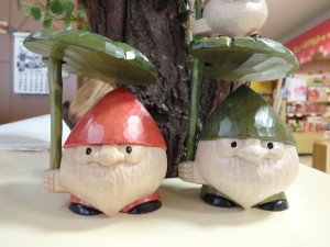 大人気の「蕗(ふき)持ちコロポックル」。赤と緑の他に、茶・黄がありますが、黄色が欠品中です。 1つ2,160円(税込) |