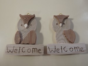 木工房の指導員が作った商品です。横を向いているふくろうと、正面を向いているふくろうの2種類あります。可愛らしくて、お土産に人気です!! 1,000円(税込) |