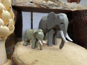 ミニチュア動物の親子シリーズでも、おすすめなのが「ぞう」です。子どもはちょっと色が違って、大きさが大人の約半分。どちらか一方ではなく、2体あった方がステキ!!! 子(左)1,296円(税込)・親(右)1,188円(税込) |
