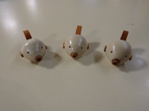 木工房ゼペットの指導員オリジナル商品です。大きさは、正面から見たら約2cm、横から見たら約4cmです。小さくて可愛いですよ~!! ひとつ250(税込) |