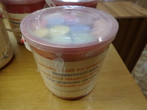 直径約2.5cm、長さ約10cmの大きなチョークが15本入っています。入れ物には取っ手がついているので、持ち運びやすいですよ~!! 648円(税込) |