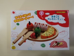 ピザ、ロールケーキ、メロン、りんご、いちご、クロス、トレー、包丁、パンナイフがセットになっています。包丁でサクサク切ったり、大きなクロスを広げてピクニックごっこなど出来ますよ~。 3,780円(税込) |