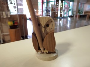 木工房ゼペットの指導員オリジナルのペン立てはいかがですか?従来の差しておくタイプではなく、上手にふくろうが支えています。 800円(税込) |