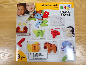 アルファベットのブロック26個と台座カード、バッグのセットです。カードの表面には、アルファベットに結びつく動物の絵、裏面は書き順が描かれています。 4,536円(税込) |