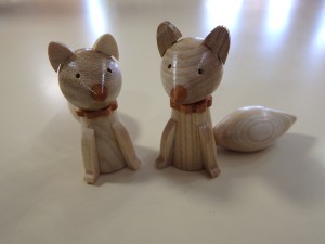 木工房の指導員オリジナル商品です。顔や体はほとんど同じですが、しっぽの向きが少し違います。横についているものと、後ろについているものと2種類あります。 350円(税込) |