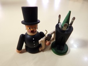 木のおもちゃ館でもおなじみの「煙出し人形」は、これからの時期、たくさんの仲間がみなさまの元へ旅立っていきます。この「煙突掃除」は、薪ストーブの家庭ではおなじみですが、今では知らない人が多いかも知れませんね・・・。はしごを持って仕事モードですが、片手にはきちんとパイプ煙草を持っています(笑) 3,240円(税込) |