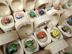 下にえんぴつ削りがついていて、上のふたを開けたら昆虫がいます。手足をゆらゆら動かす姿が何とも言えません。赤や黄色、緑やピンクなどいろいろな色の昆虫がいます。 270円(税込) |
