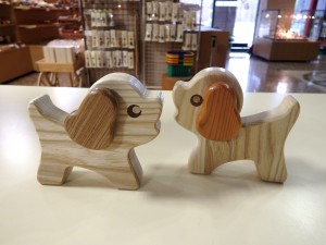 飼い主を探し続けている「犬のポチ」が、少し新しくなっています!耳の色が異なっているので、それぞれ持つ雰囲気が違います!一切着色はしておらず、木の色が生かされています! ひとつ864円(税込) |