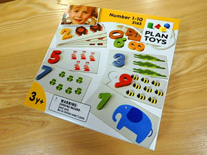 1~10の数字のブロックと10枚の動物カード、バッグがセットになっています。動物カードの裏に描かれた破線の数字は、お子様が数字を書く学習に役立ちます。 3,024円(税込) |