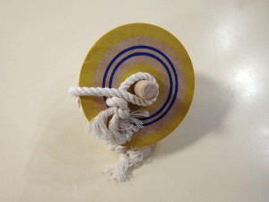 一般的に知られている「ひねりごま」と違って、「投げこま」はひもがないと回せません。丁寧に巻きつけてから思いっきり投げるとよく回ります!! 432円(税込) |