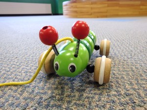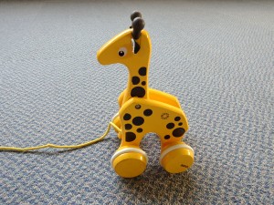 ヒモを引っ張ると、首を前後に揺らしながら動きます。まだ歩くことが出来ない赤ちゃんでも、前後に動かすだけで遊ぶことが出来ます! 2,160円(税込) |