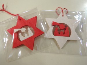そろそろクリスマスツリーを設置するご家庭も多いのではないでしょうか!ガラスケースには、小さいものから大きなものまでツリーに飾るオーナメントが販売されています。こちらはクリスマスに誕生したキリストをお祝いする様子のオーナメントです。 ひとつ864円(税込) |