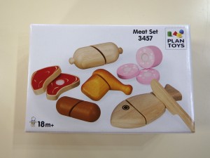 ステーキ・魚・ソーセージ・ボローニャソーセージ・サラミ・骨付きチキン・ナイフがセットになっています。ナイフでサクサク切ってお母さんのマネっこ遊び♪1歳半~。 2,484円(税込) |