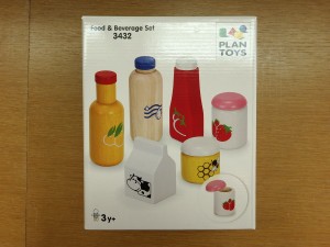 キッチンや冷蔵庫と合わせて遊べるセットです。オレンジジュース・水・牛乳・ケチャップ・ジャム・はちみつが入っています。ジャムとはちみつはフタが開くようになっています。 2,700円(税込) |