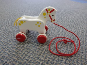BRIO130周年を記念して作られたプルトイです。歩き始めのお子様が引っ張って遊ぶには、ちょうどよい大きさです。 3,780円(税込) |