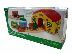 簡単に組めるレールとカラフルな列車、クッションタイプのトンネルが付いた1歳半からのレールセットです。 5,400円(税込) |