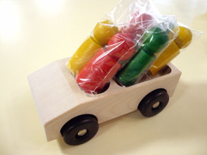フィンランド・ユシラ社製の、カバ材で作られたシンプルなデザインのクルマです。人形6体付き。 3,672円(税込) |