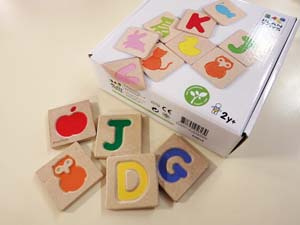 アルファベット大文字のくぼみがついたタオルが26枚入っています。裏面にはその文字に対応する絵が描かれています。 2,592円(税込) |