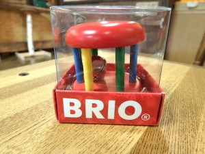 BRIOのクラシックな木製ガラガラです。振ったり、鳴らしたり、転がしたり、遊び方は様々です。 972円(税込) |