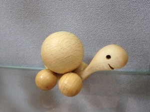 木製のかめさんは、大きさ約8cmと手のひらサイズ!動きに合わせて、甲羅がコロコロ回ります。 1,728円(税込) |