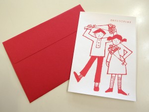 赤い封筒と二つ折りのカードがセットになっています。お誕生日や結婚・出産のお祝いに!!プレゼントに一言添えて渡しましょう♪ 108円(税込) |