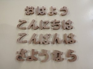 先日ご紹介した、木工房ゼペットの指導員手作りのアルファベットに続く、「ひらがな」です。濁点がついたひらがなのパーツもあります! 1つ50円(税込) |
